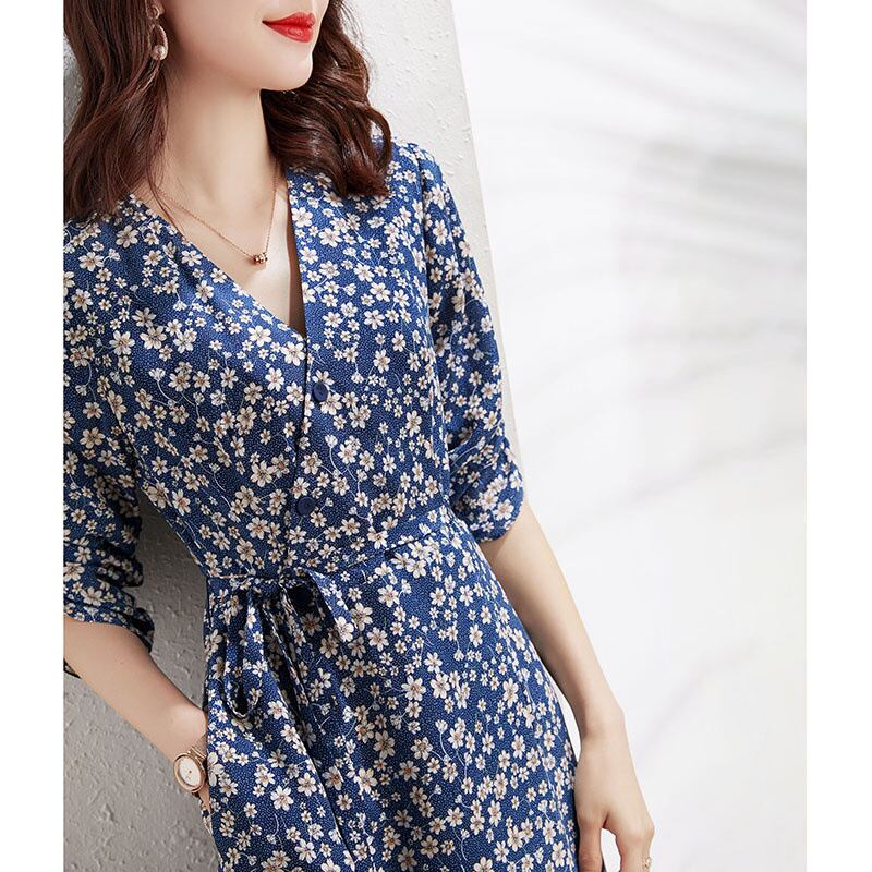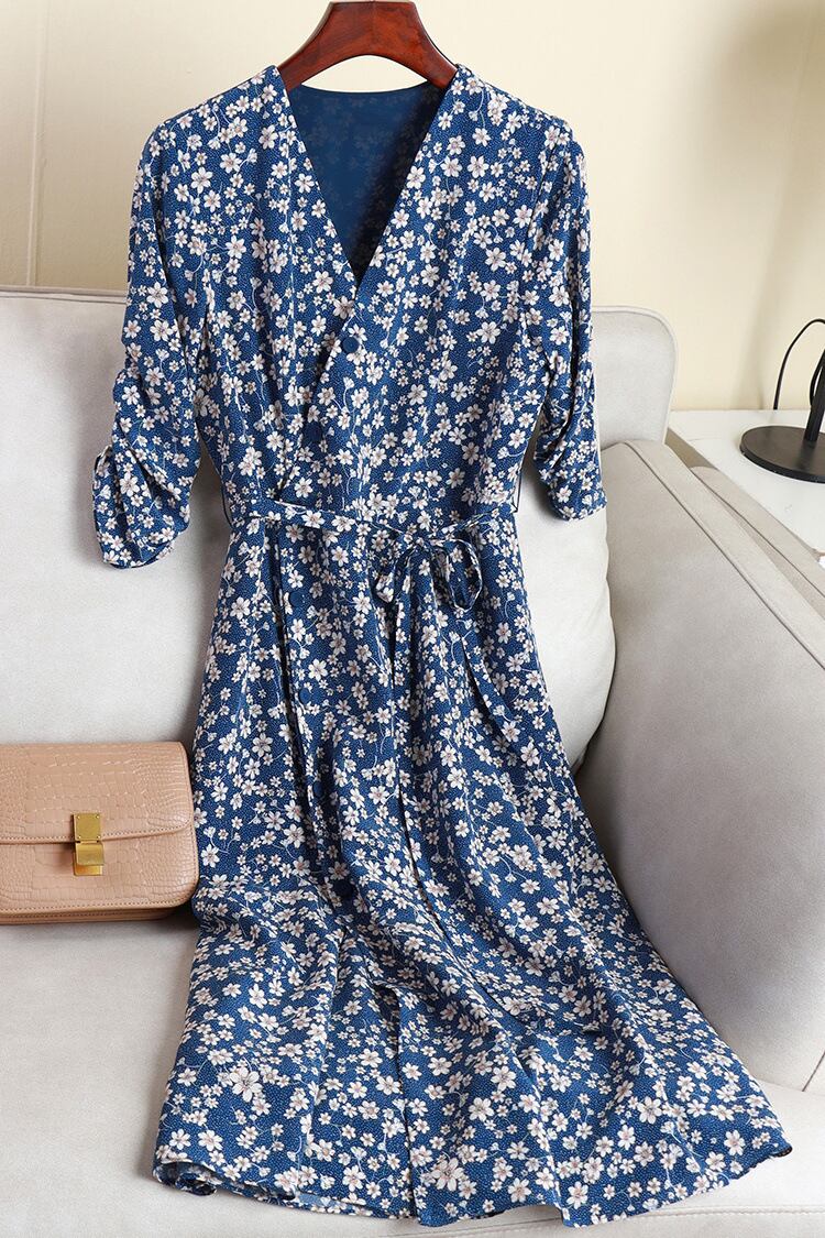 【ワンピース】 ワンピース レディース おしゃれ 20代 30代 40代 春 夏 秋 ひざ丈 膝丈 ひざ下 膝下 ワンピース 春秋 花柄 半袖 五分袖 20代 30代 40代 aライン ワンピース ワンピースドレス 韓国 ワンピース ドレス ワンピース 大人 可愛い きれいめ レトロ ネイビー 青 S M L XL