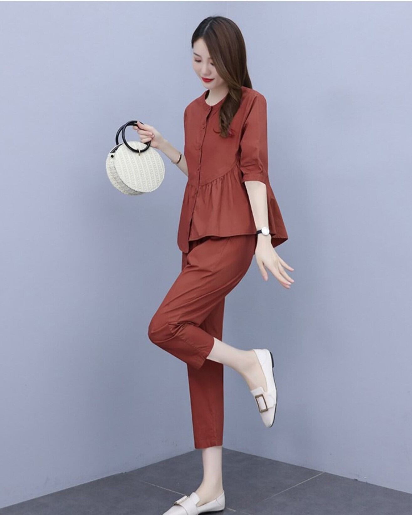 【セットアップ】 大きいサイズ セットアップ レディース おしゃれ パンツ シャツ ブラウス 長袖 春 夏 秋 20代 30代 40代 きれいめ アーミーグリーン 緑 ブリックレッド 赤 M L XL 2XL 3XL