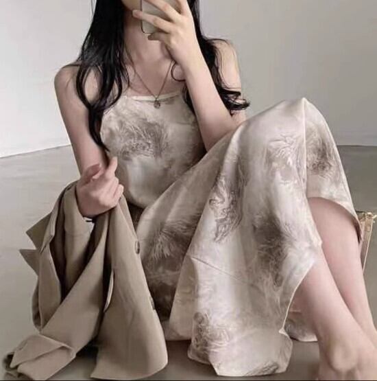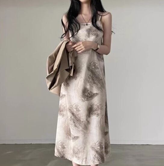 【ワンピース】ワンピース レディース 春 夏 おしゃれ 20代 30代 40代 花柄 ロングワンピース 春夏 ノースリーブ ミモレ丈 韓国 ワンピース ドレス ワンピース 大人 可愛い きれいめ アプリコット グレー フリーサイズ