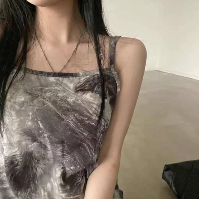 レトロな絞り染めのキャミワンピース。