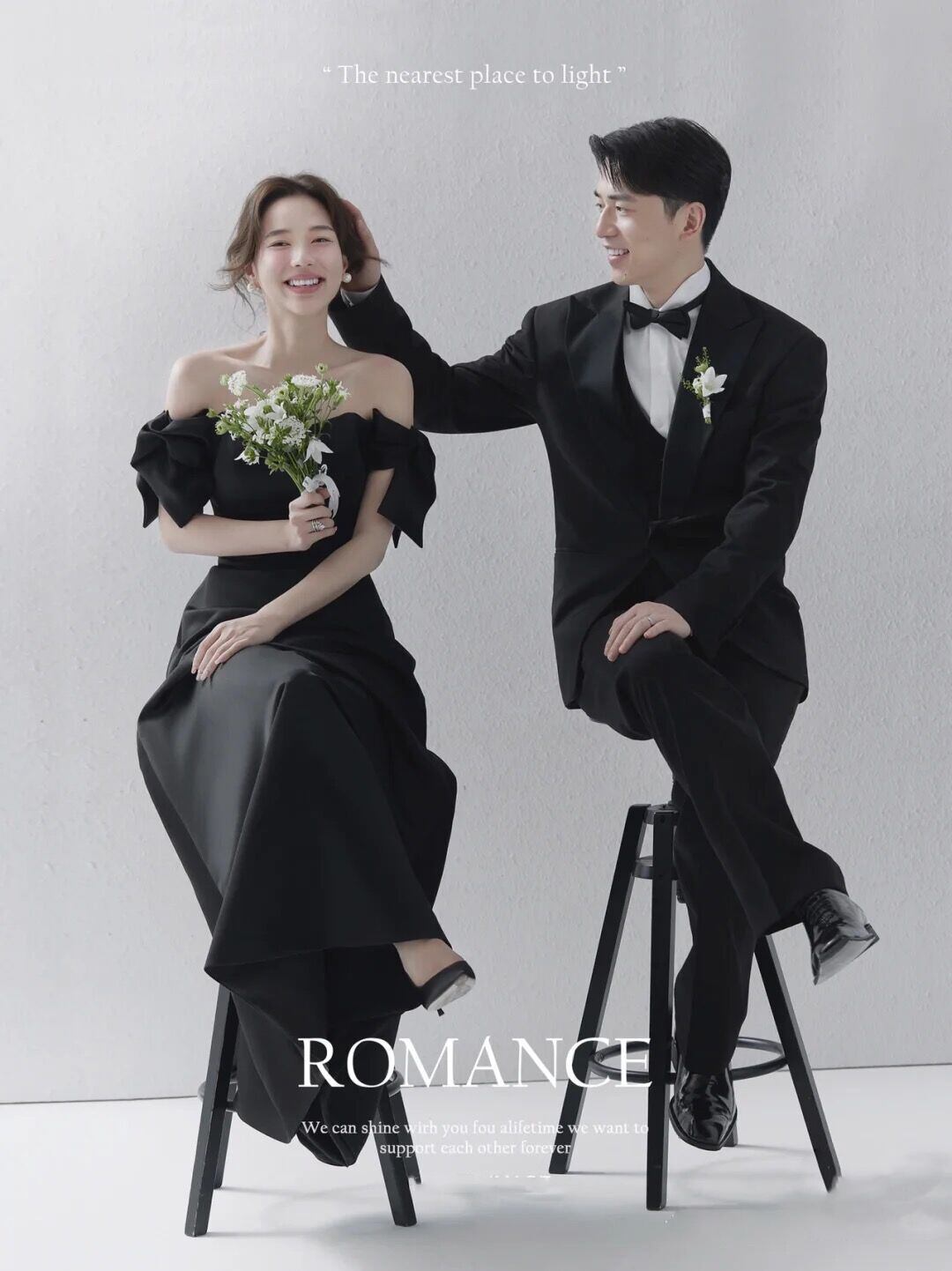 エスコート側もブラックで決めれば統一感のあるコーデに。