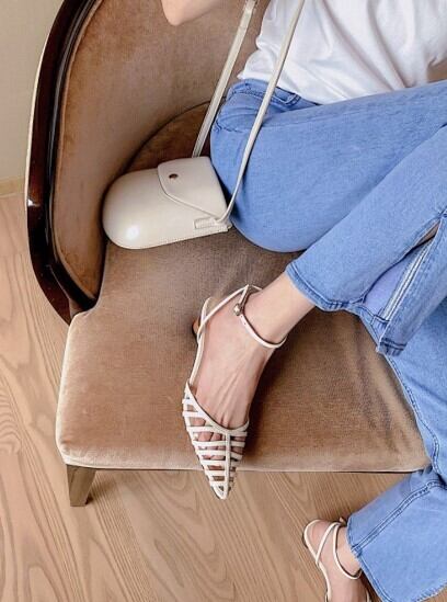 キレイめなコーデが叶うポインテッドトゥグルカサンダル。