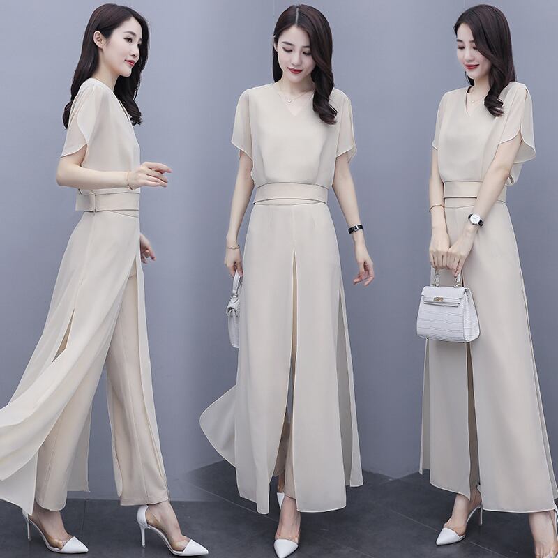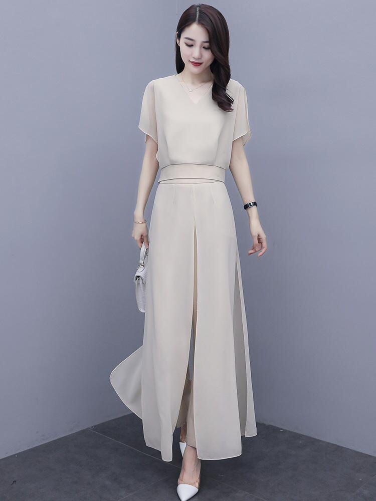 キレイめに着こなせるシフォン素材のパンツドレス。