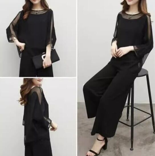 キレイめに着こなせるシフォン素材のパンツドレス。