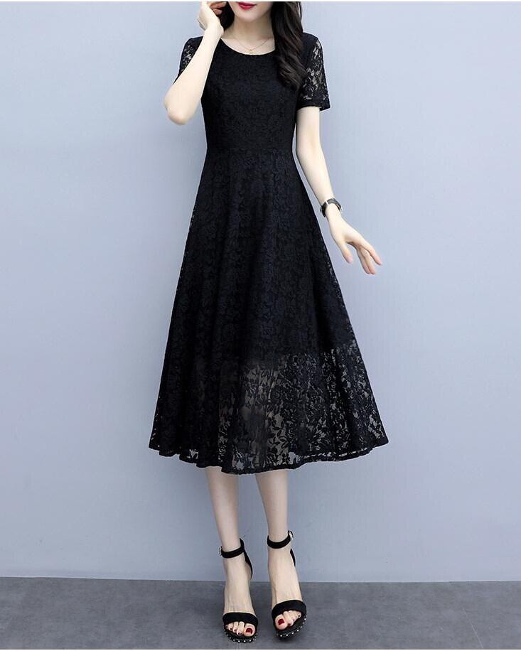 【ワンピース】 大きいサイズ ワンピース レディース おしゃれ 20代 30代 40代 結婚式 二次会 春 夏 秋 冬 ひざ下 膝下 ワンピース 春秋 無地 総レース半袖 aライン ワンピース ワンピースドレス 韓国 ワンピース ドレス ワンピース 大人 可愛い ブラック 黒 きれいめ M L XL 2XL 3XL 4XL