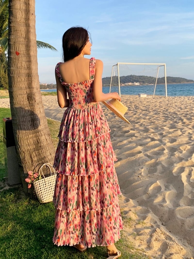 【ワンピース】ワンピース レディース 春 夏 秋 おしゃれ 20代 30代 40代 花柄 ロングワンピース ビーチ 海 リゾート ノースリーブ ロング 韓国 ワンピース ドレス ワンピース 大人 可愛い カジュアル きれいめ ピンク イエロー S M L XL