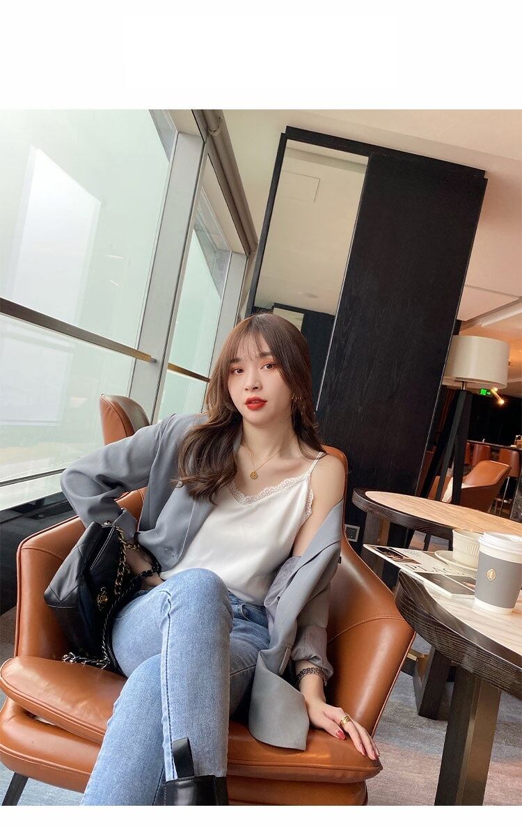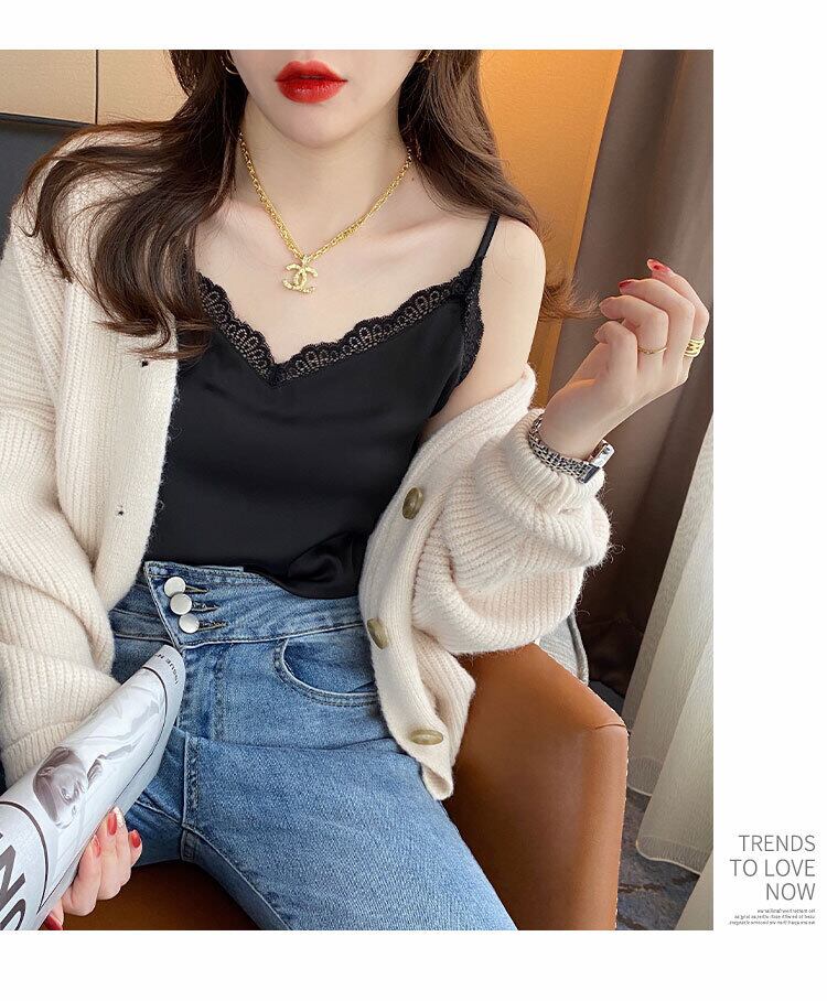 キレイめに着こなせるサテンシルクのVネックキャミソール。