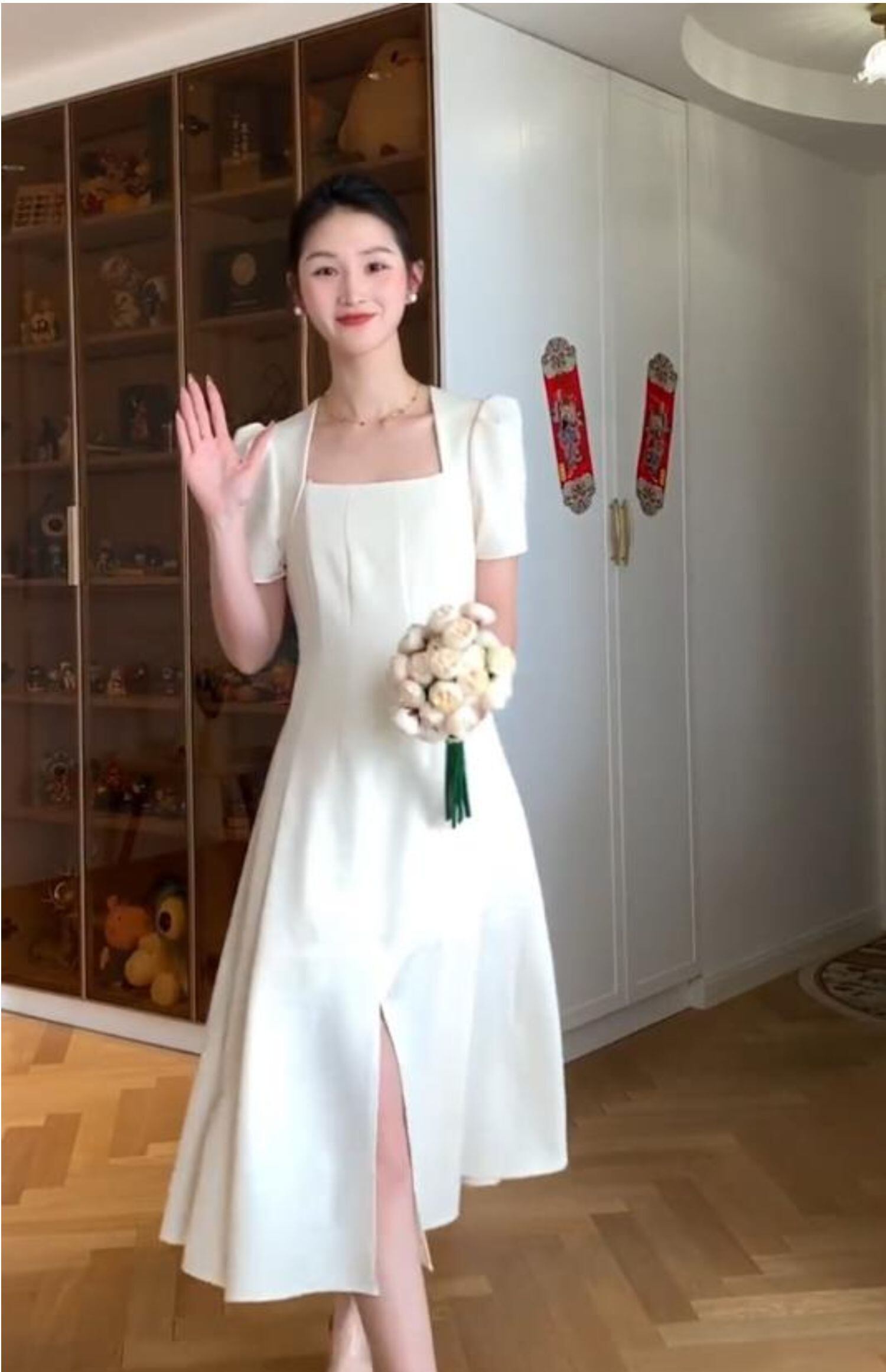 裾に入ったスリットがレディなイメージをほどこしてくれる。