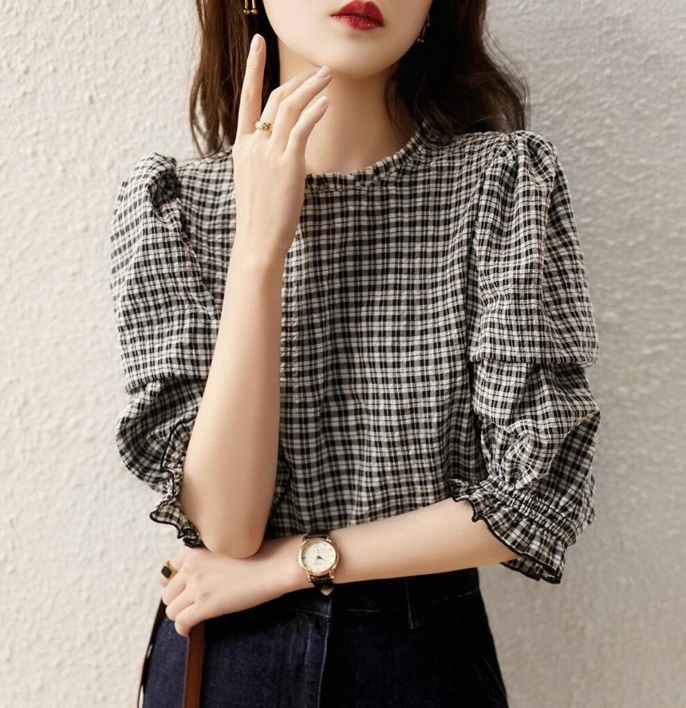 【ブラウス】大きいサイズ レディース ブラウス チェック レディース シャツ ブラウス 韓国 ブラウス 春 夏 秋 冬 20代 30代 40代 シンプル フリル ブラウス きれいめ 可愛い ブラウス シャツブラウス シャツ ブラウス オフィス レディース 半袖 五分袖 ブラウス トップス