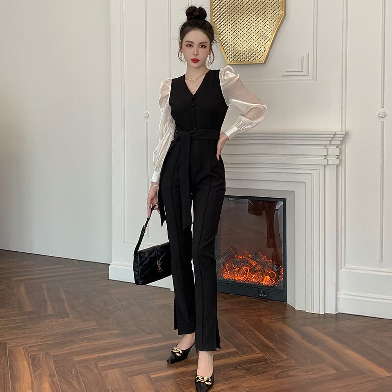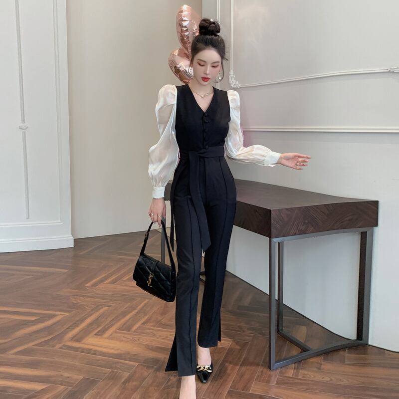 【パンツドレス】パーティードレス パンツ 結婚式のお呼ばれ 30代 パンツドレス 結婚式 かっこいい パンツドレス 黒 バイカラー 20代 30代 40代 オールインワン お呼ばれ 二次会 袖あり フォーマルドレス 結婚式フォーマルドレス おしゃれ 個性的 S-XL