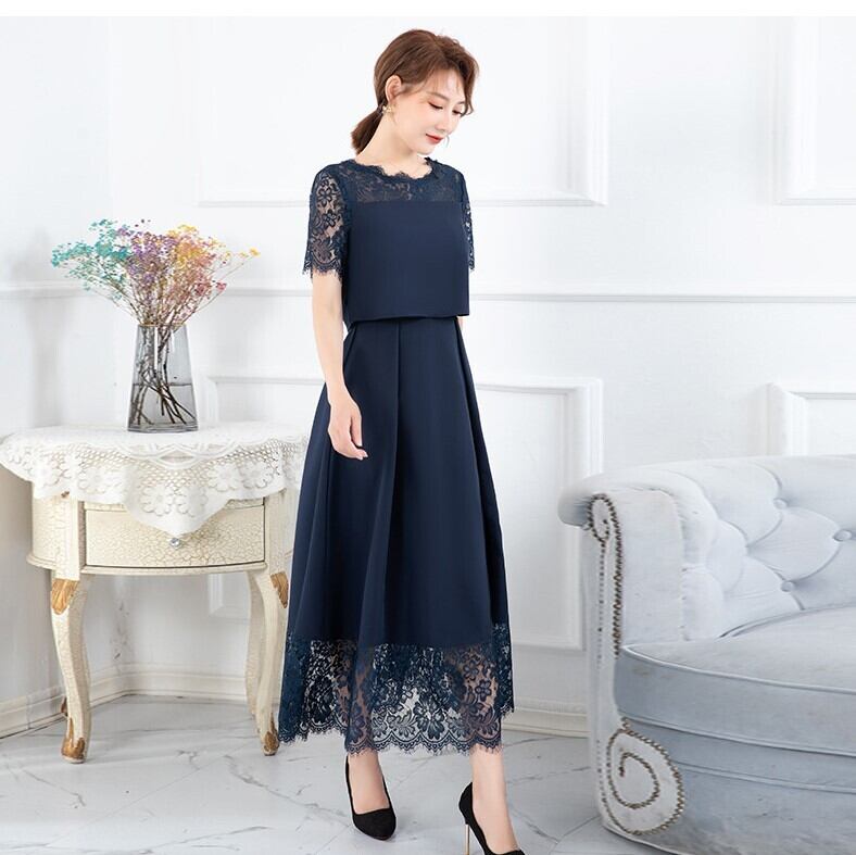 レースの透け感がエレガントなパーティードレス。