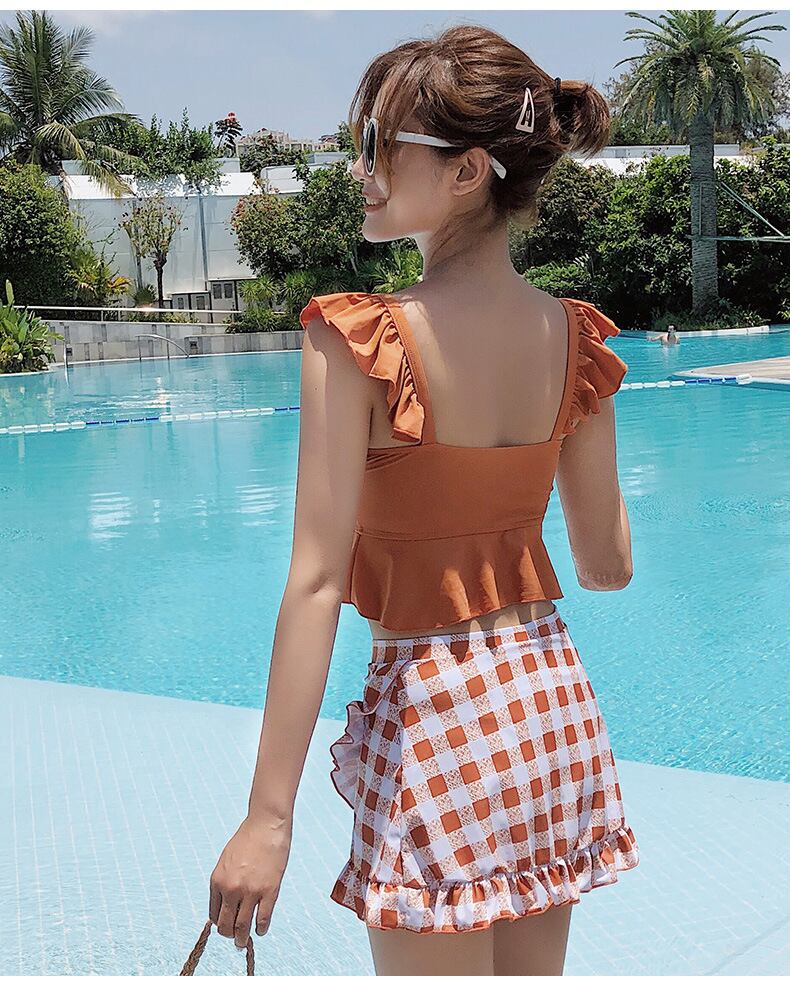 フリル付きで気になるお腹や太ももを体型カバーしてくれる。