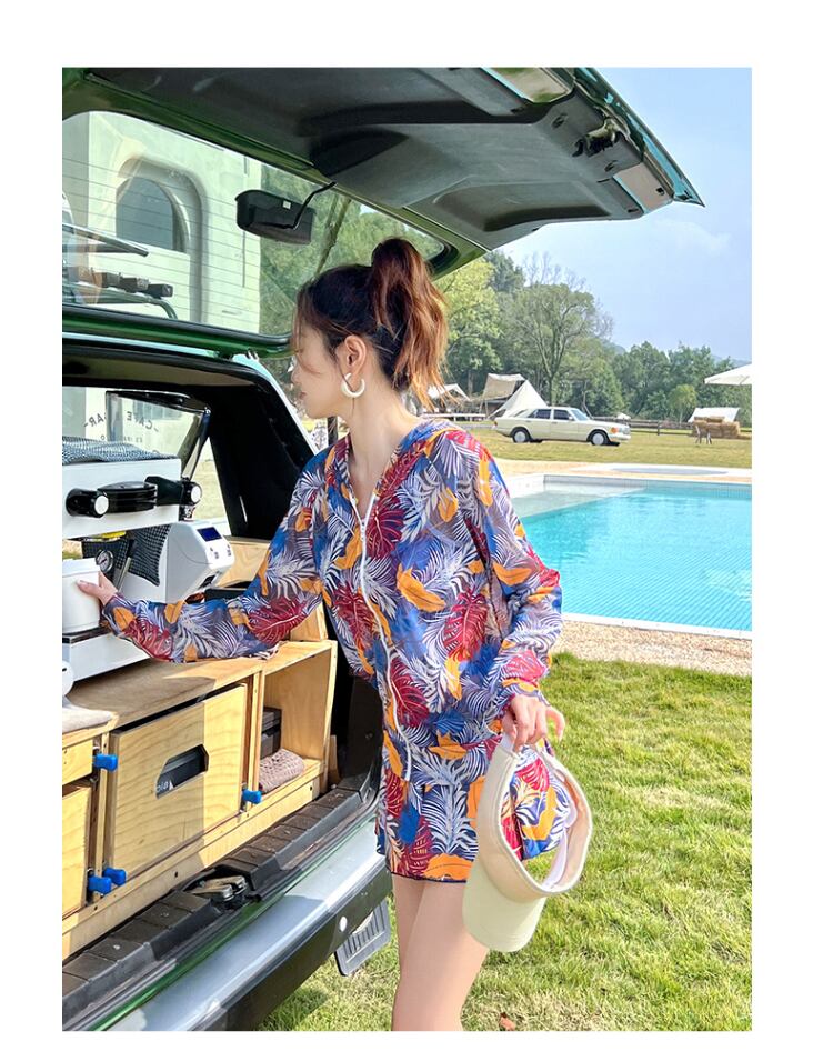 日焼け止めにもなるブラウス付きのタンキニ水着。
