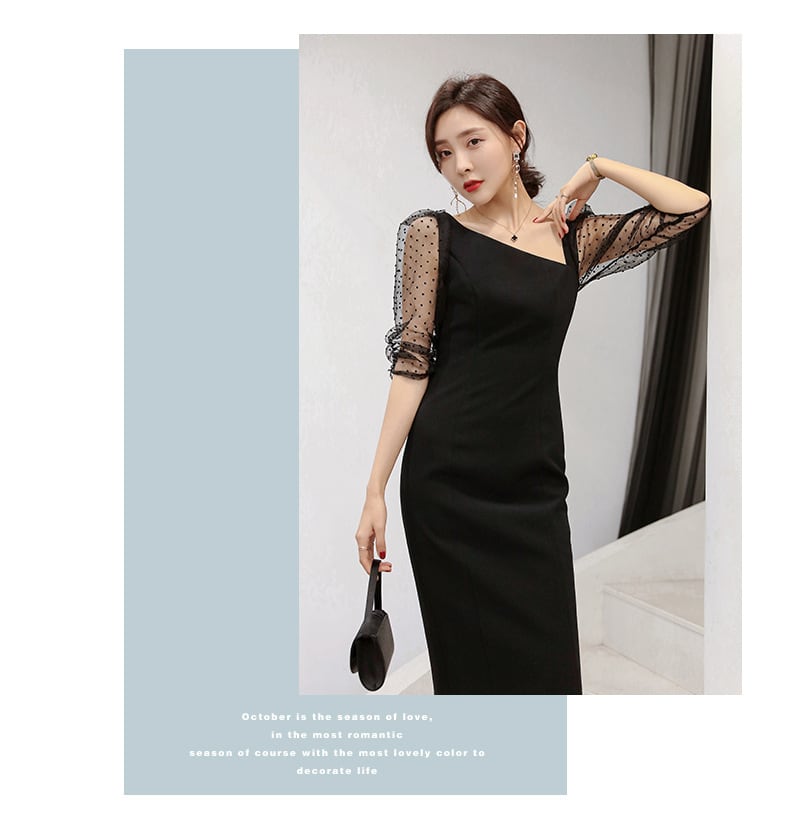 【パーティードレス】 パーティードレス 結婚式 お呼ばれドレス 結婚式のお呼ばれ ワンピース 黒 ブラック ロングワンピース 20代 30代 40代 フォーマルドレス 袖あり ミディ丈 ひざ丈 体型カバー お呼ばれ 二次会 シースルー フォーマルワンピースシンプル おしゃれ S M L