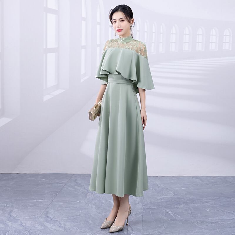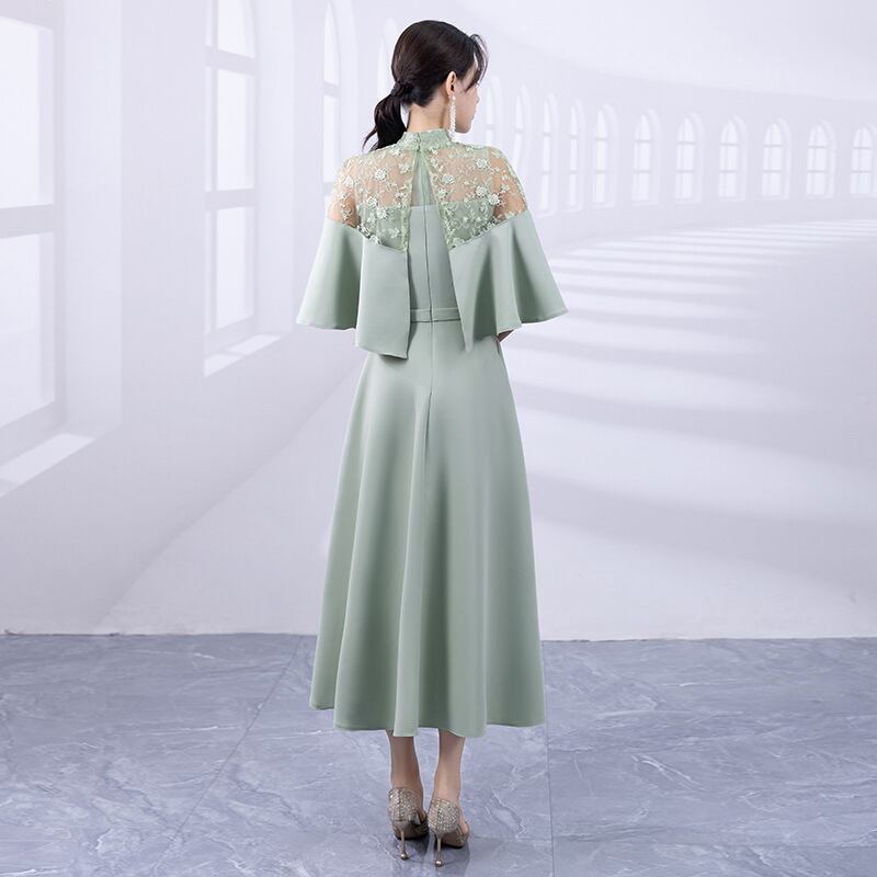 【パーティードレス】大きいサイズ パーティードレス 結婚式 卒業式 同窓会 謝恩会 お呼ばれドレス 結婚式のお呼ばれ ワンピース ロングワンピース 20代 30代 40代 フォーマルドレス 袖あり ミモレ丈 体型カバー お呼ばれ 二次会 フォーマルワンピースシンプル おしゃれ ライトグリーン 緑 XS S M L XL 2XL 3XL