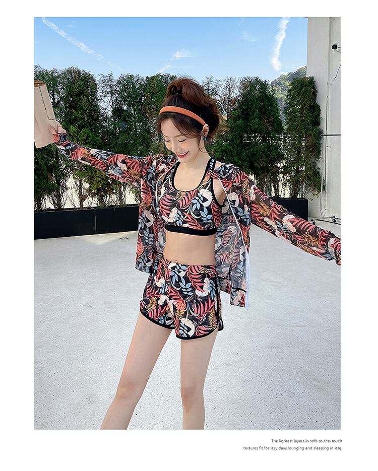 体型カバーが叶うブラウス付きのタンキニ水着3点セット。
