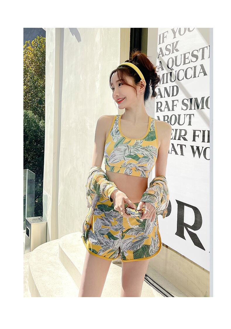 【水着】 大きいサイズ 水着 タンキニ レディース 体型カバー 3点セット ボタニカル 可愛い おしゃれ ラッシュガード 20代 30代 40代 ママ 水着 韓国 水着 パンツ 海 ビーチ プール リゾート スイムウェア イエロー ブラック 黒 M L XL 2XL