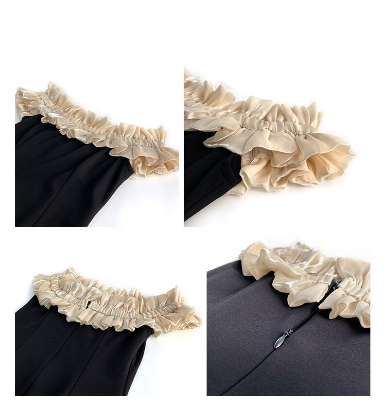 【パーティードレス】 結婚式 ワンピース 膝丈 黒 フォーマルドレス 二次会 お呼ばれ 20代 30代 40代 フォーマル バイカラー オフショル S-XL