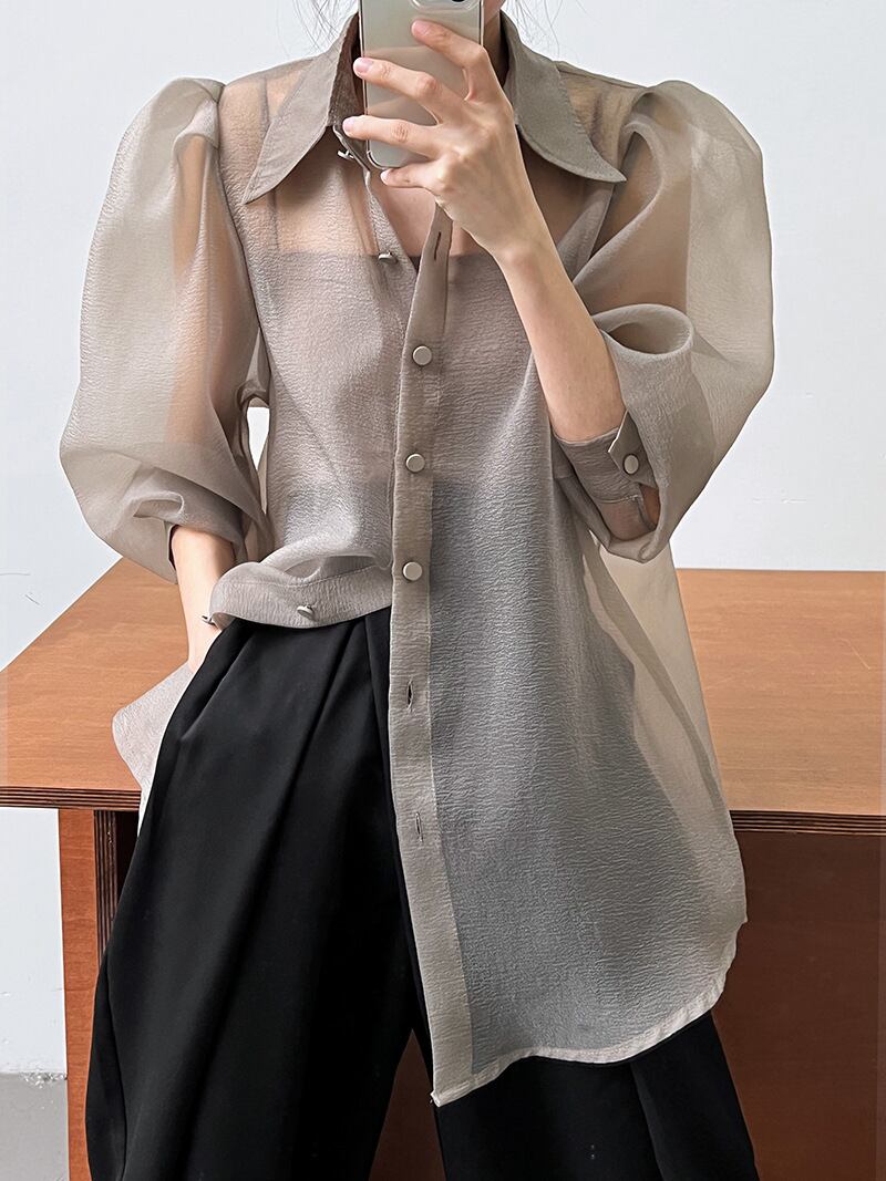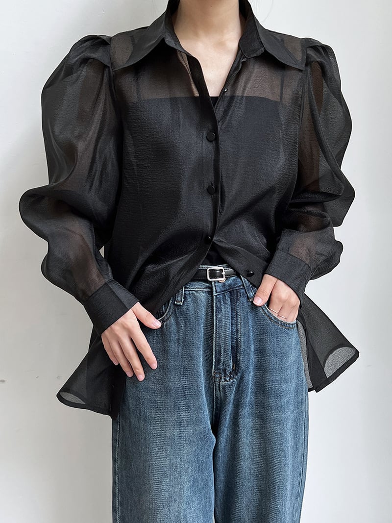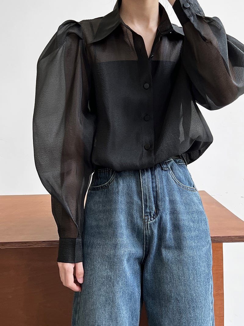 たっぷりのボリュームがドレッシー感漂うシアーブラウス。