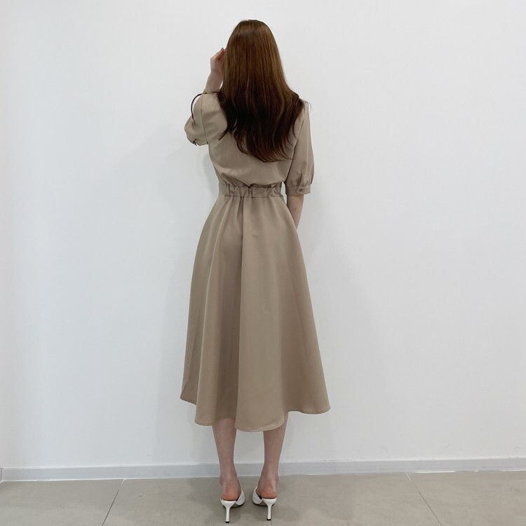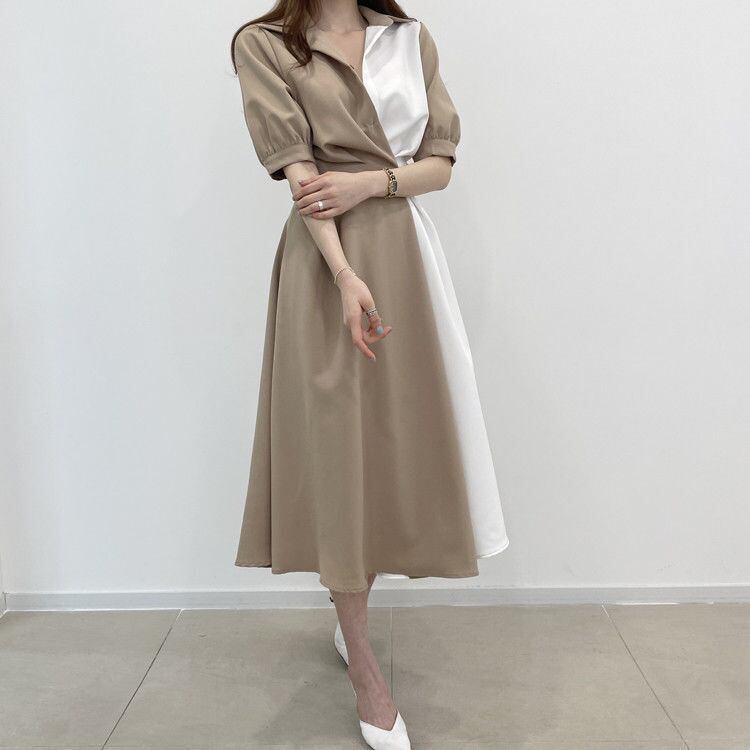【ワンピース】ワンピース 春 夏 ひざした ワンピース 膝下ワンピース レディース きれいめ 韓国 シャツ ワンピース 半袖 バイカラー S-XL