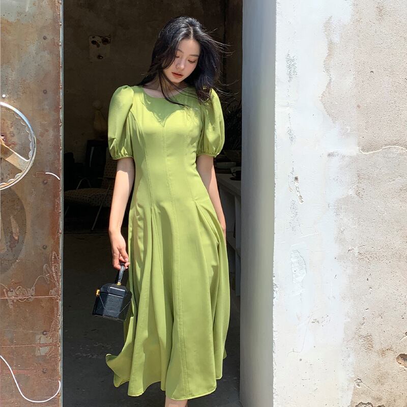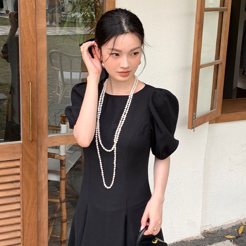 【ワンピース】ワンピース 春 夏 ワンピース ロング ワンピース マタニティ 韓国 ワンピース 半袖 ドレス ロングワンピース 黒 レトロ パフスリーブ S-L