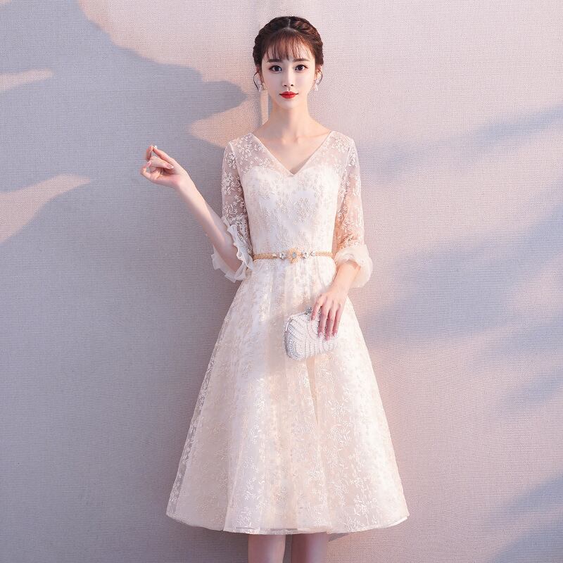 【パーティードレス】大きいサイズ パーティードレス 結婚式 五分袖 ハイウエスト aライン ワンピース 膝下 黒 フォーマルドレス 二次会 お呼ばれ 20代 30代 40代 袖あり フォーマル フリル 体型カバー レース エレガント