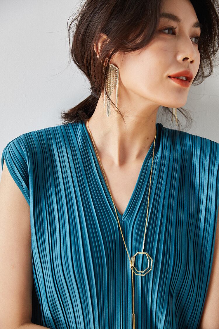 大人の女性を演出できるvネックプリーツワンピース。