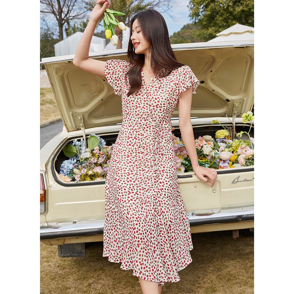 【ワンピース】ワンピース 春 夏 花柄 ワンピース マタニティ ワンピース ひざした ワンピース 膝下ワンピース レトロ フリル 韓国 ワンピース 半袖 ドレス 春秋 ワンピース S-XL