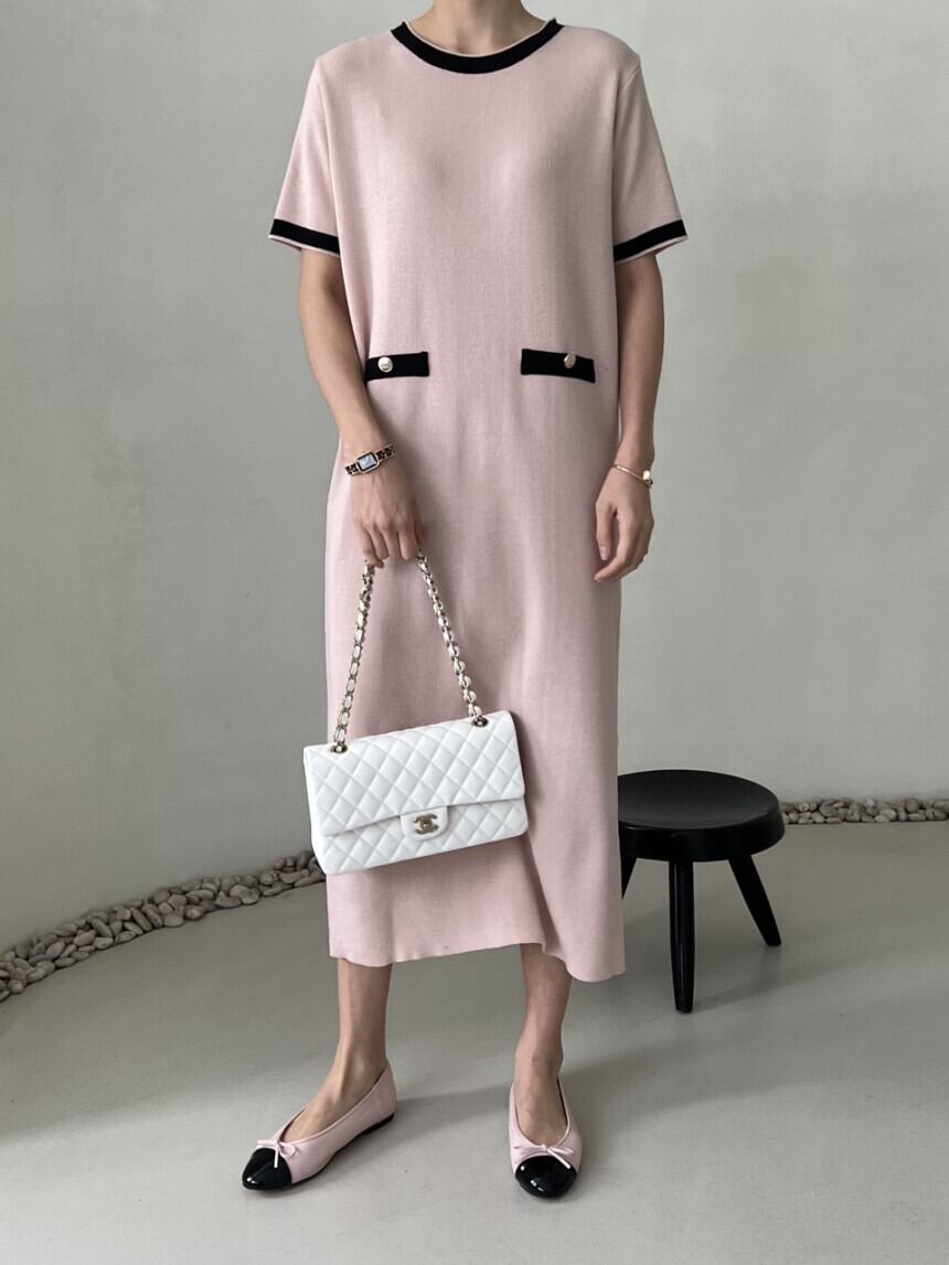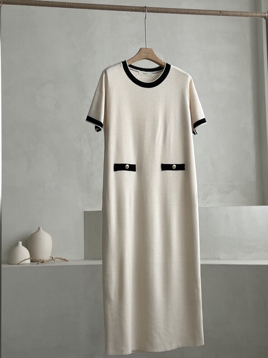 【ワンピース】ワンピース 春 夏 ワンピース ロング ワンピース ニット ワンピース 韓国 ワンピース 半袖 ロングワンピース 黒 春秋 ワンピース レトロワンピ バイカラー ワンサイズ