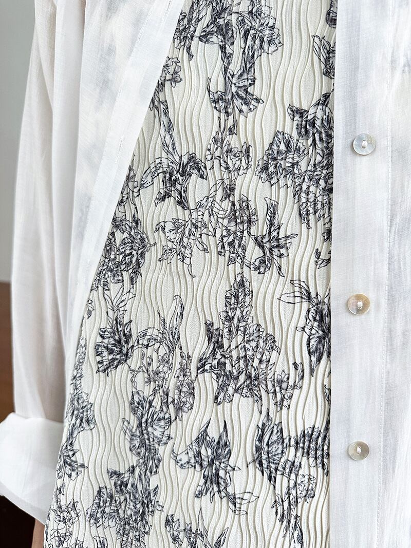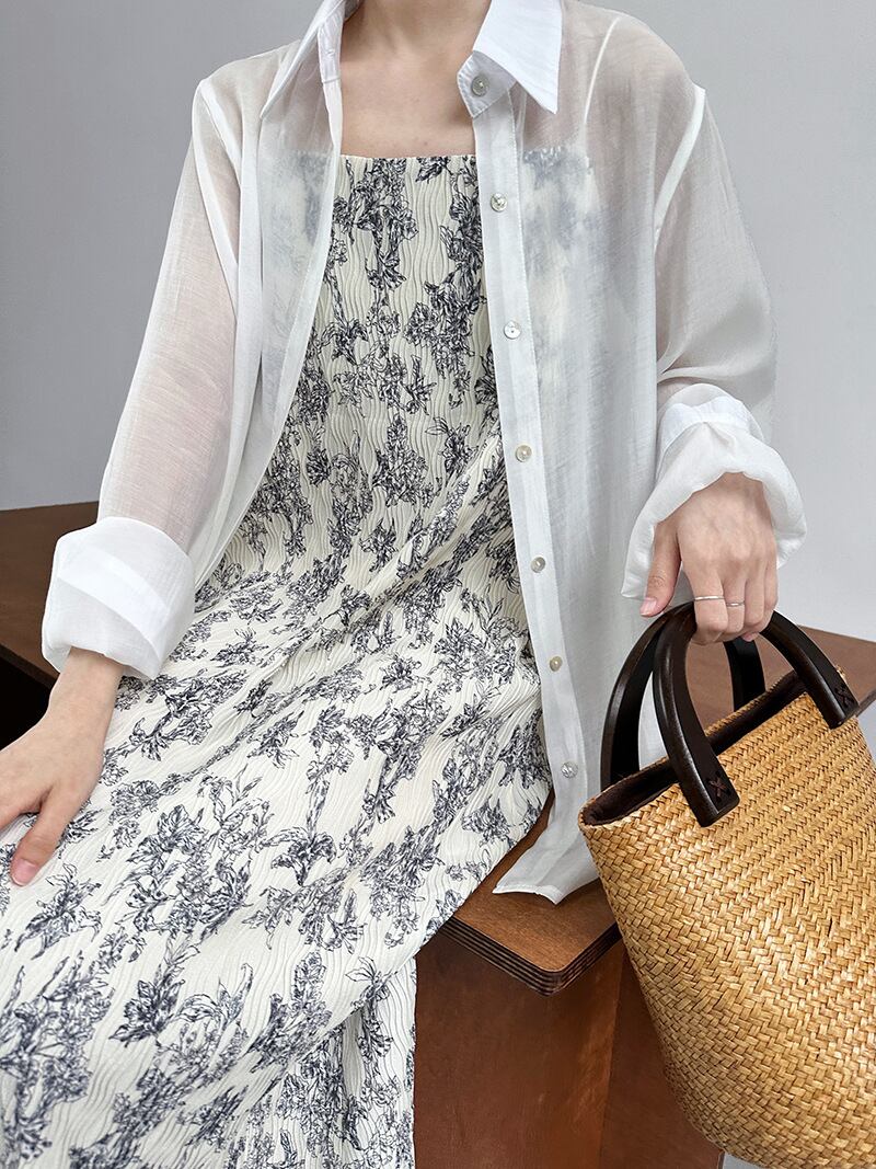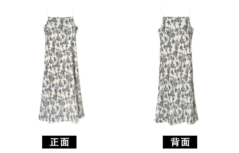 シックな水墨画風の花柄キャミワンピース。
