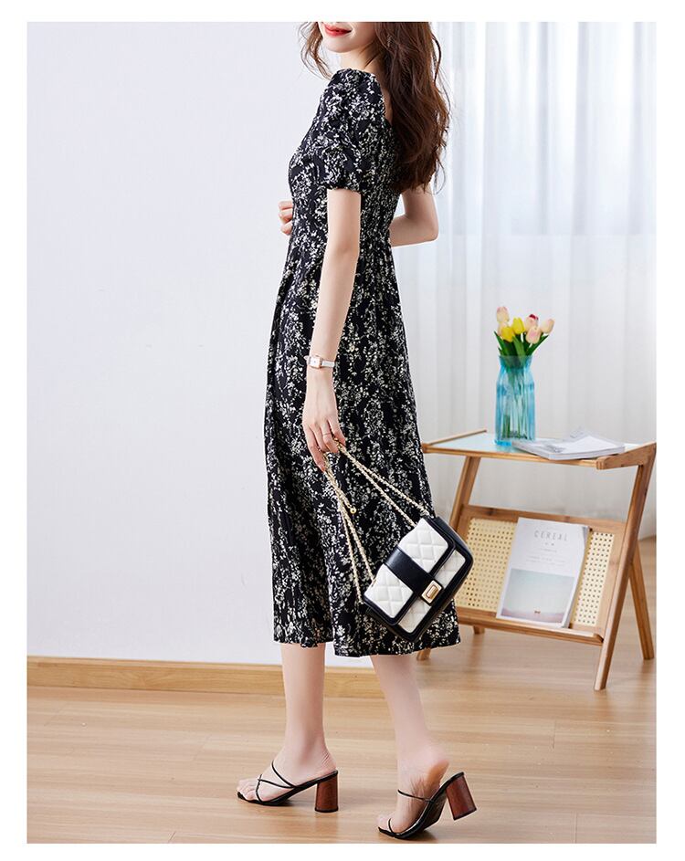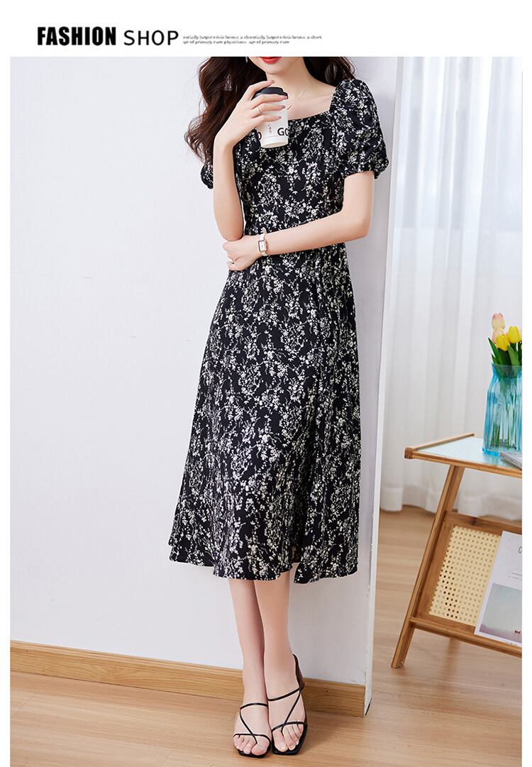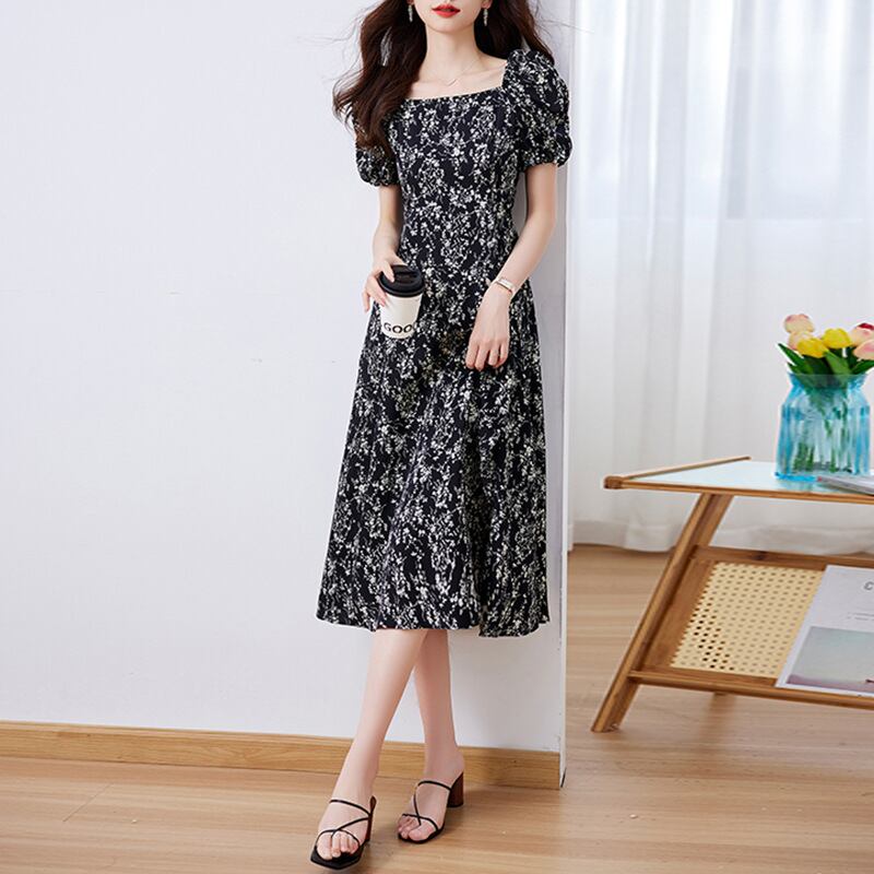 【ワンピース】大きいサイズ ワンピース 春 夏 花柄 ワンピース レディース ワンピース ひざした ワンピース 膝下 ワンピース レディース きれいめ ワンピースドレス 韓国 ワンピース 半袖 ドレス パフスリーブ