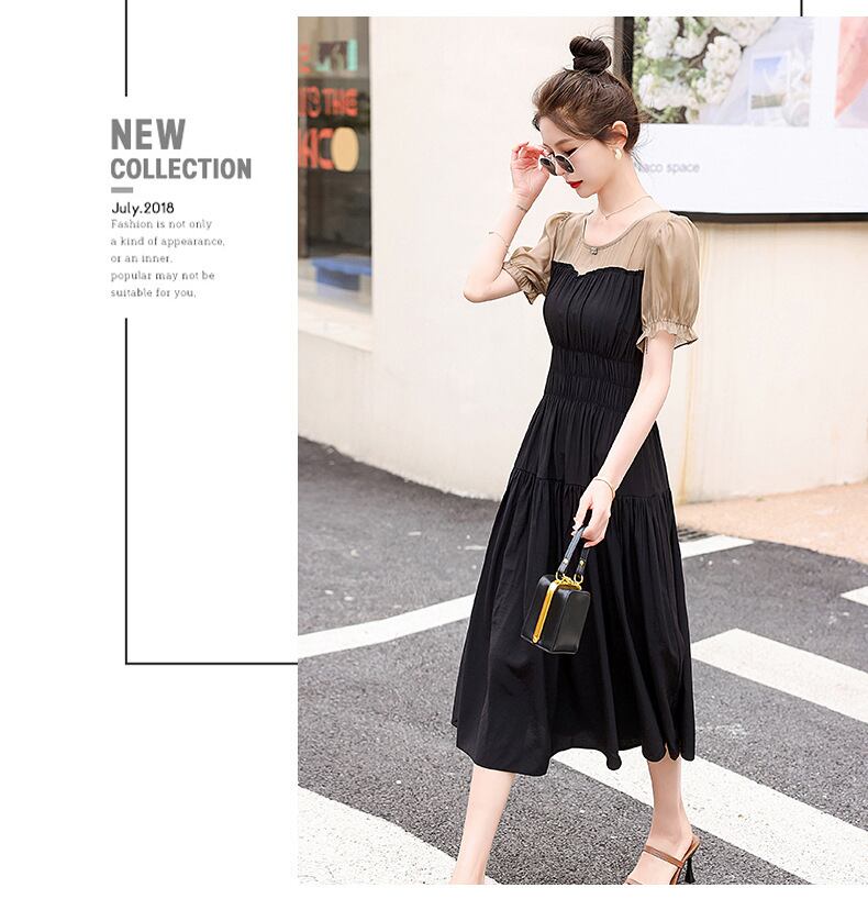 【ワンピース】大きいサイズ ワンピース 春 夏 ワンピース レディース ワンピース ひざした ワンピース 膝下ワンピース レディース きれいめ ワンピースドレス 韓国 ワンピース 半袖 ドレス 透け感 パフスリーブ