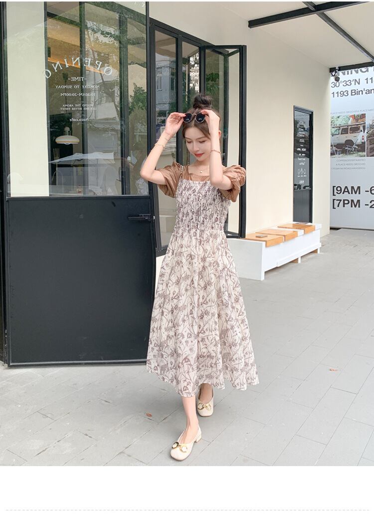 【ワンピース】ワンピース 春 夏 ワンピース 花柄 透け感 20代 30代 40代 ロングワンピース レトロ パフスリーブ マタニティ ワンピース レディース ロング ロング丈 韓国 ワンピース 半袖 ロングワンピース 春秋 ワンピース S-XL