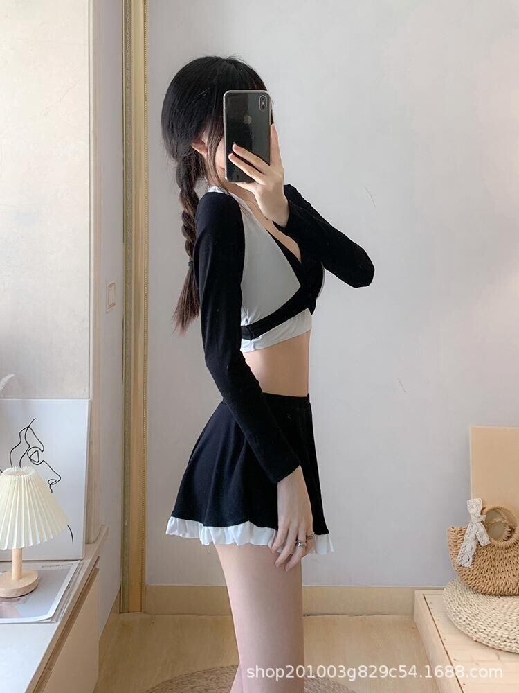フリルや胸元のクロスデザイン、ホルターネックなどおしゃれ度高めのデザイン。