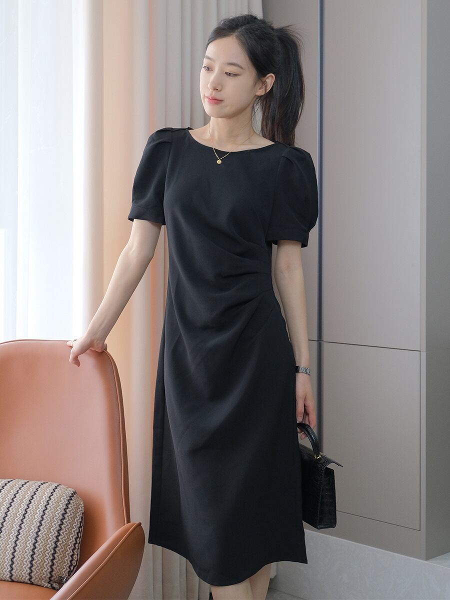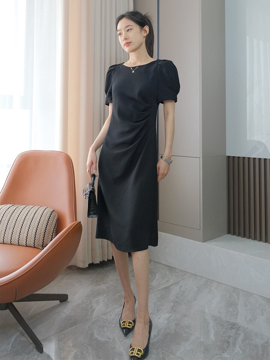 【パーティードレス】 パーティードレス 結婚式 ワンピース 膝丈 黒 20代 30代 40代 体型カバー パフスリーブ お呼ばれドレス 結婚式のお呼ばれ フォーマルドレス 二次会 パーティー お呼ばれ 袖あり お呼ばれ フォーマル フォーマルワンピース おしゃれ 着痩せ シンプル S-L