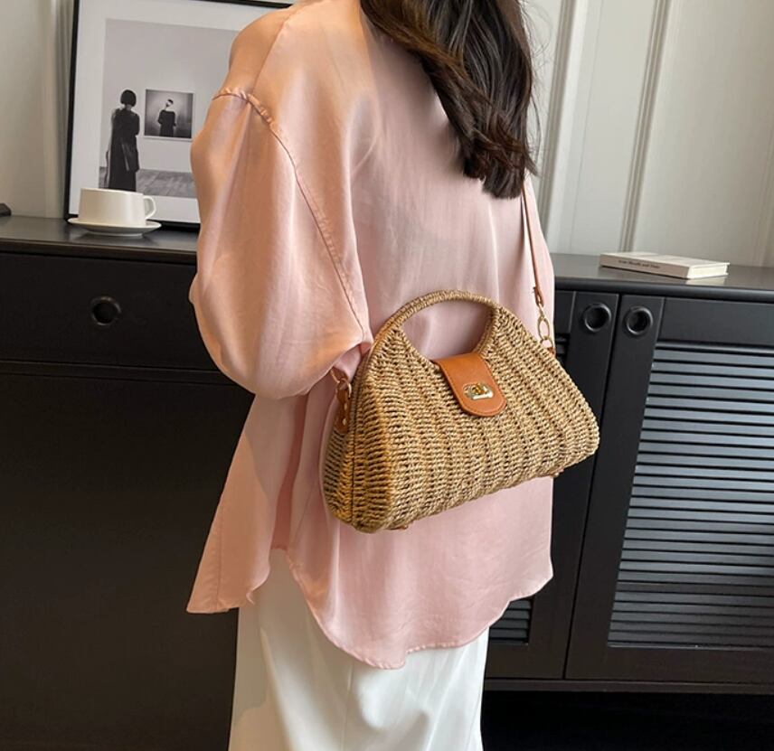 必要なものはしまえる手ごろな大きさのストローバッグ。