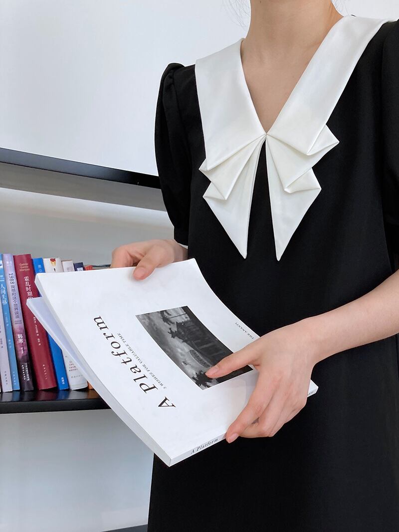 フォーマルや結婚式にもおすすめなコントラストカラーワンピース。