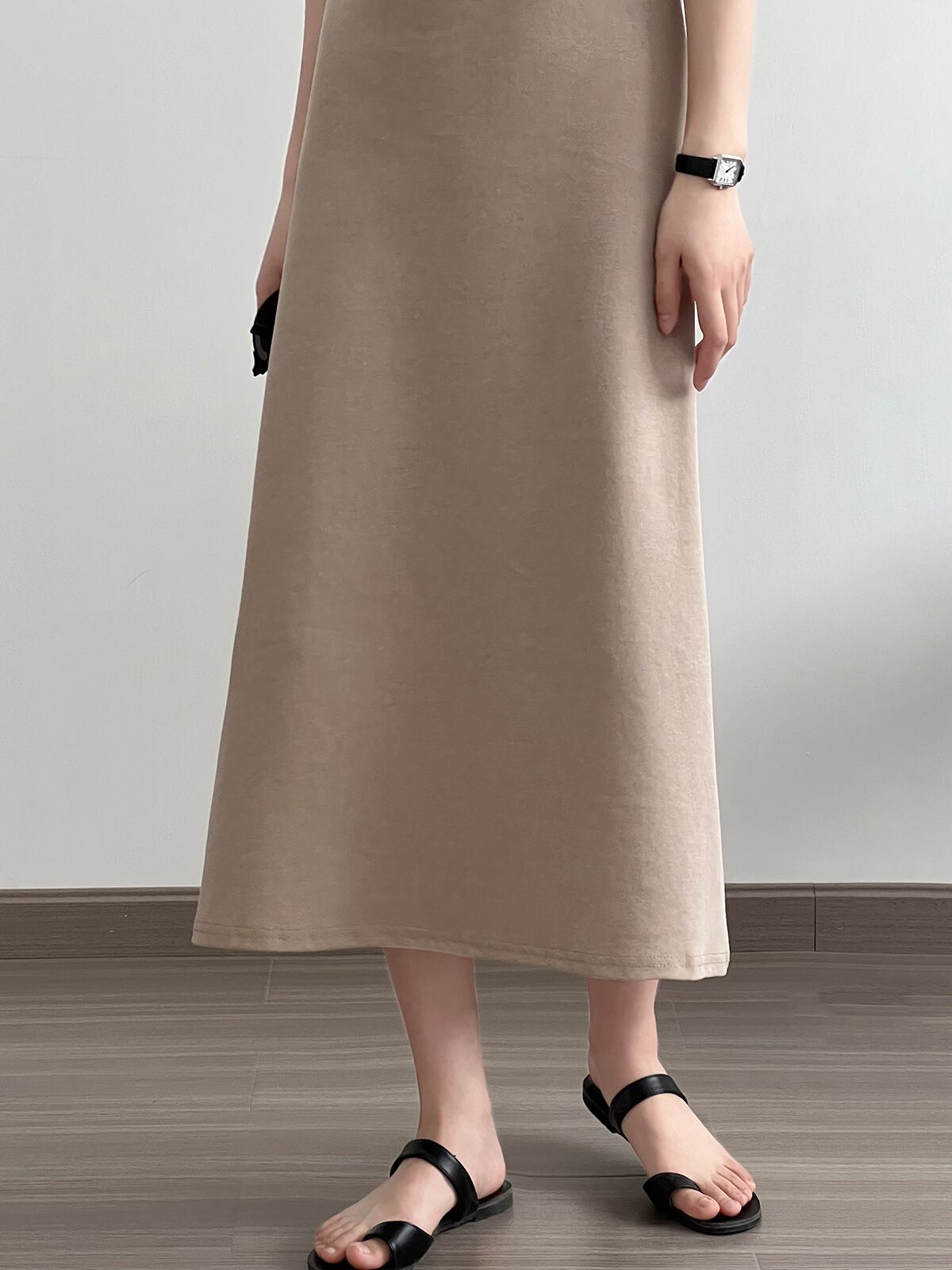 シンプルに着こなしたい深めU字ネックのtシャツワンピース。