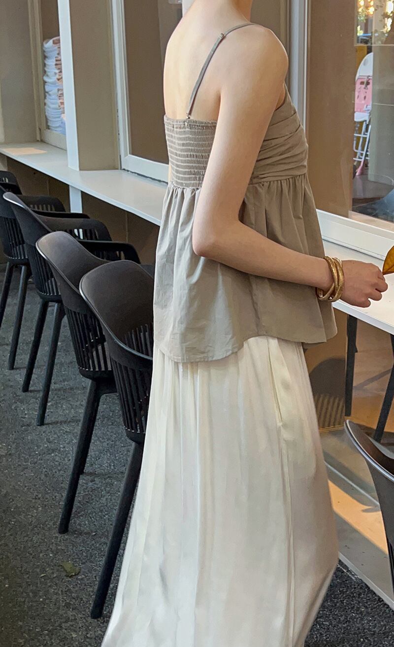 女性らしさひきたつプリーツデザインキャミソール。
