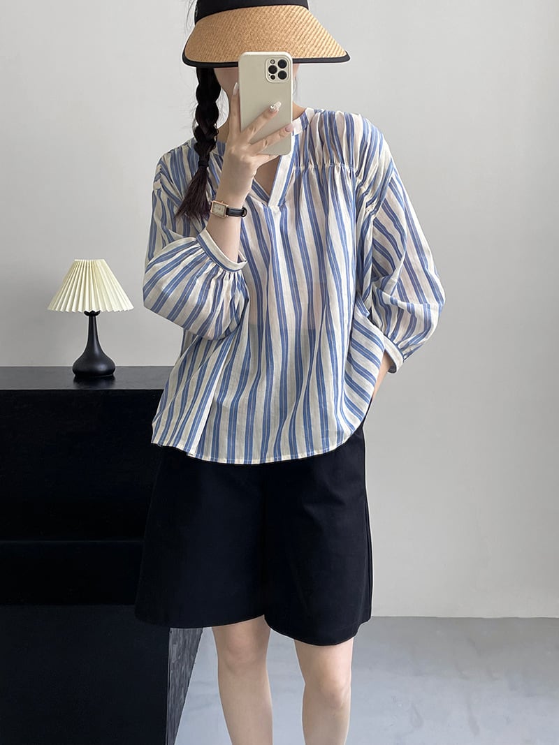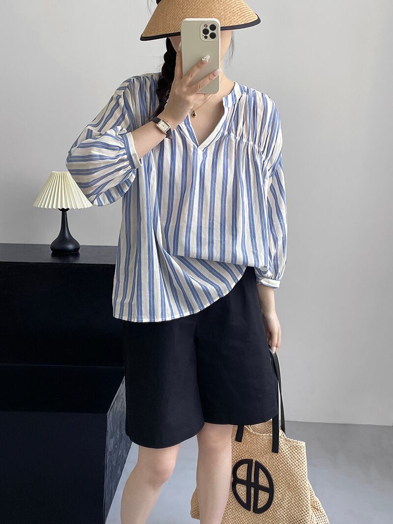 【ブラウス】レディース ブラウス ストライプ シャツ ブラウス 韓国 ブラウス 春 夏 秋 冬 20代 30代 40代 シンプル ブラウス 可愛い カジュアル シャツブラウス レディース 七分袖 ブラウス 体型カバー 着痩せ トップス M-L