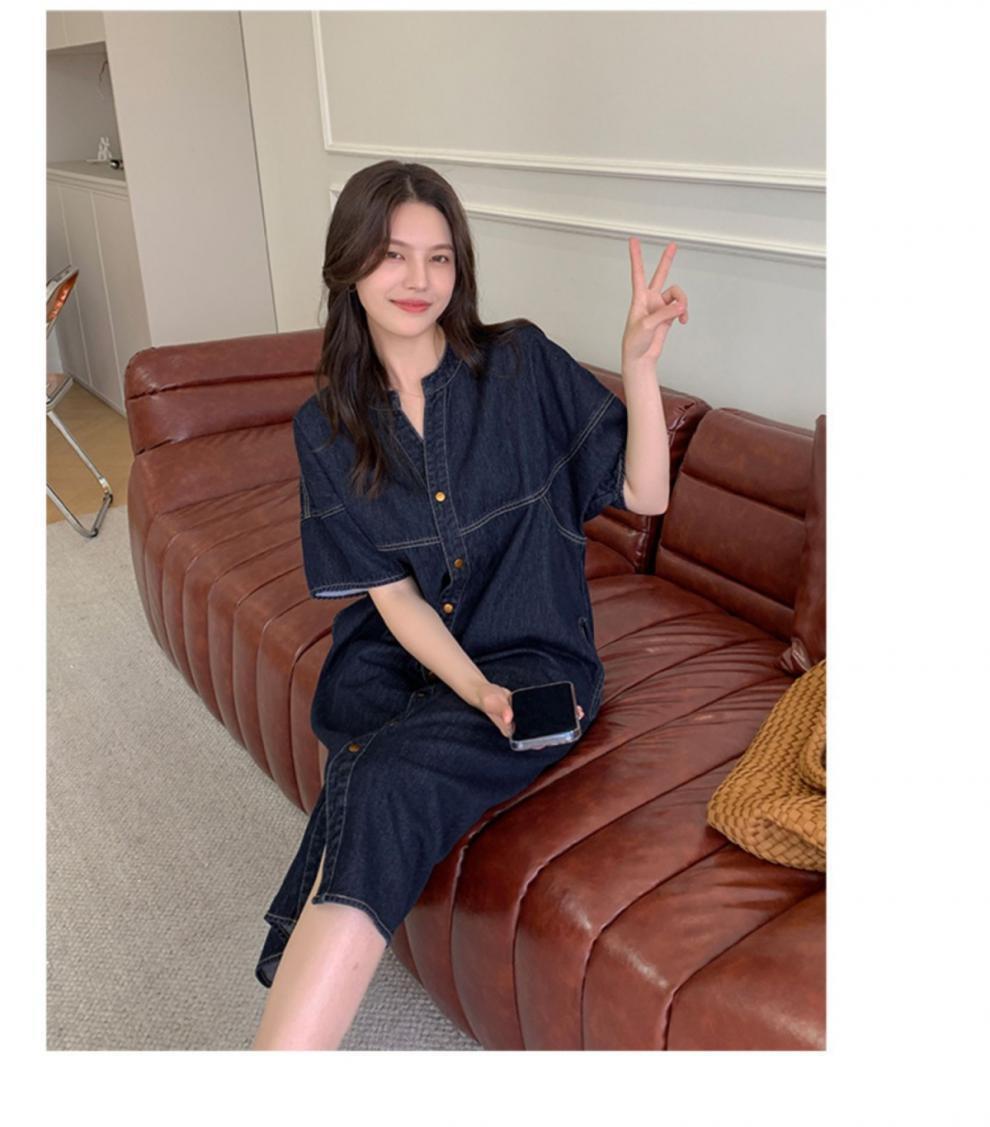 【ワンピース】 大きいサイズ ワンピース 春 夏 無地 半袖 ワンピース レトロ パフスリーブ 20代 30代 40代 デニム ワンピース 可愛い カジュアル ひざした ワンピース 膝下ワンピース レディース 韓国 ワンピース