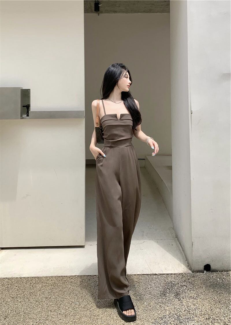 大人かっこいいノースリーブのパンツドレス。