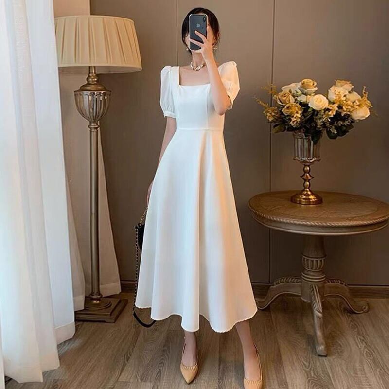 【ワンピース】大きいサイズ ワンピース 春 夏 ワンピース 無地 ロングワンピース レトロ パフスリーブ 半袖 五分袖 20代 30代 40代 マタニティ ワンピース レディース 韓国 ワンピース ドレス 黒 白 春秋 ワンピース 可愛い