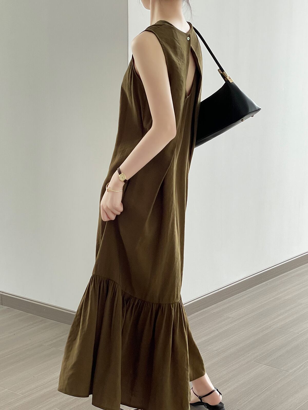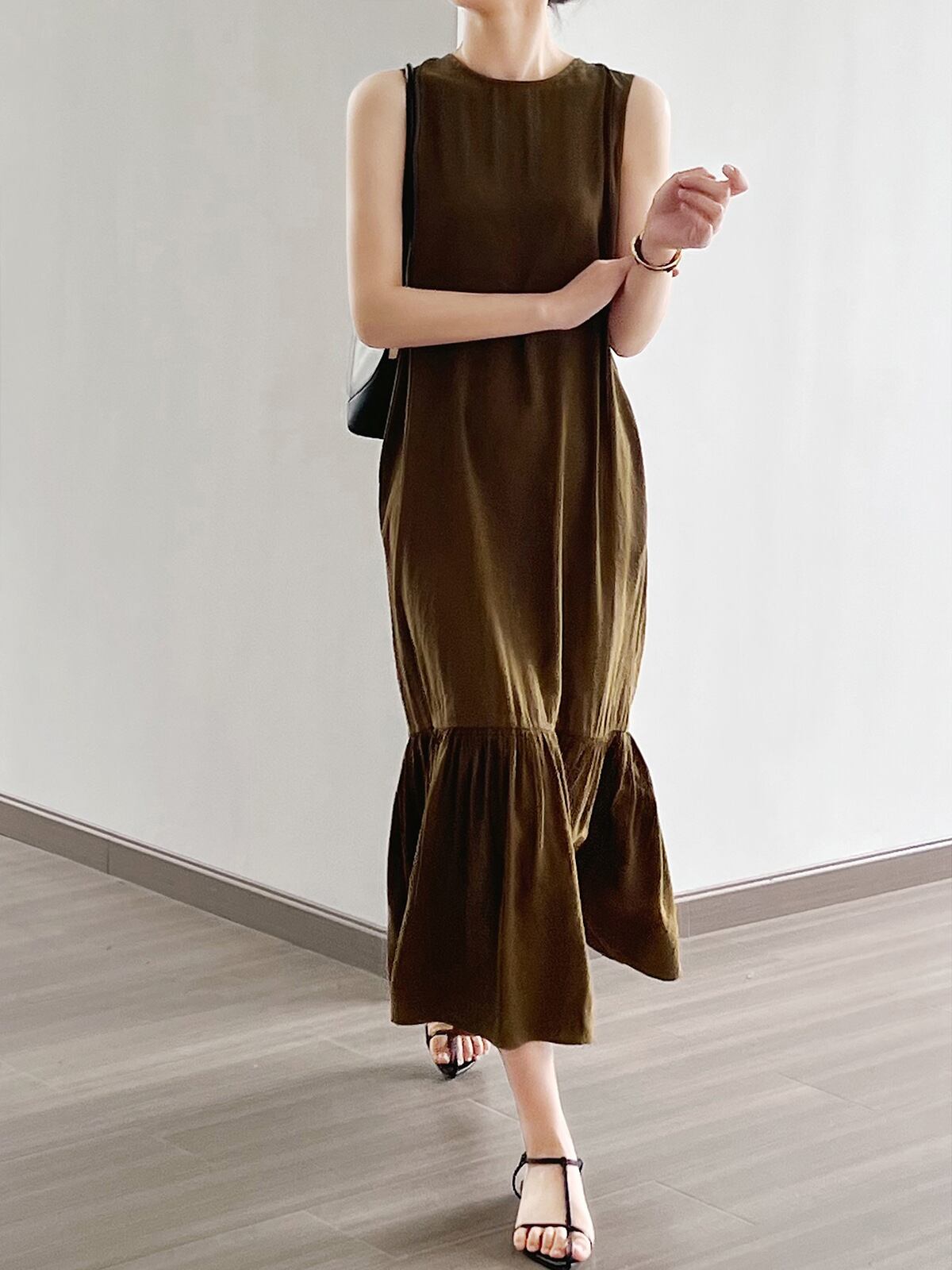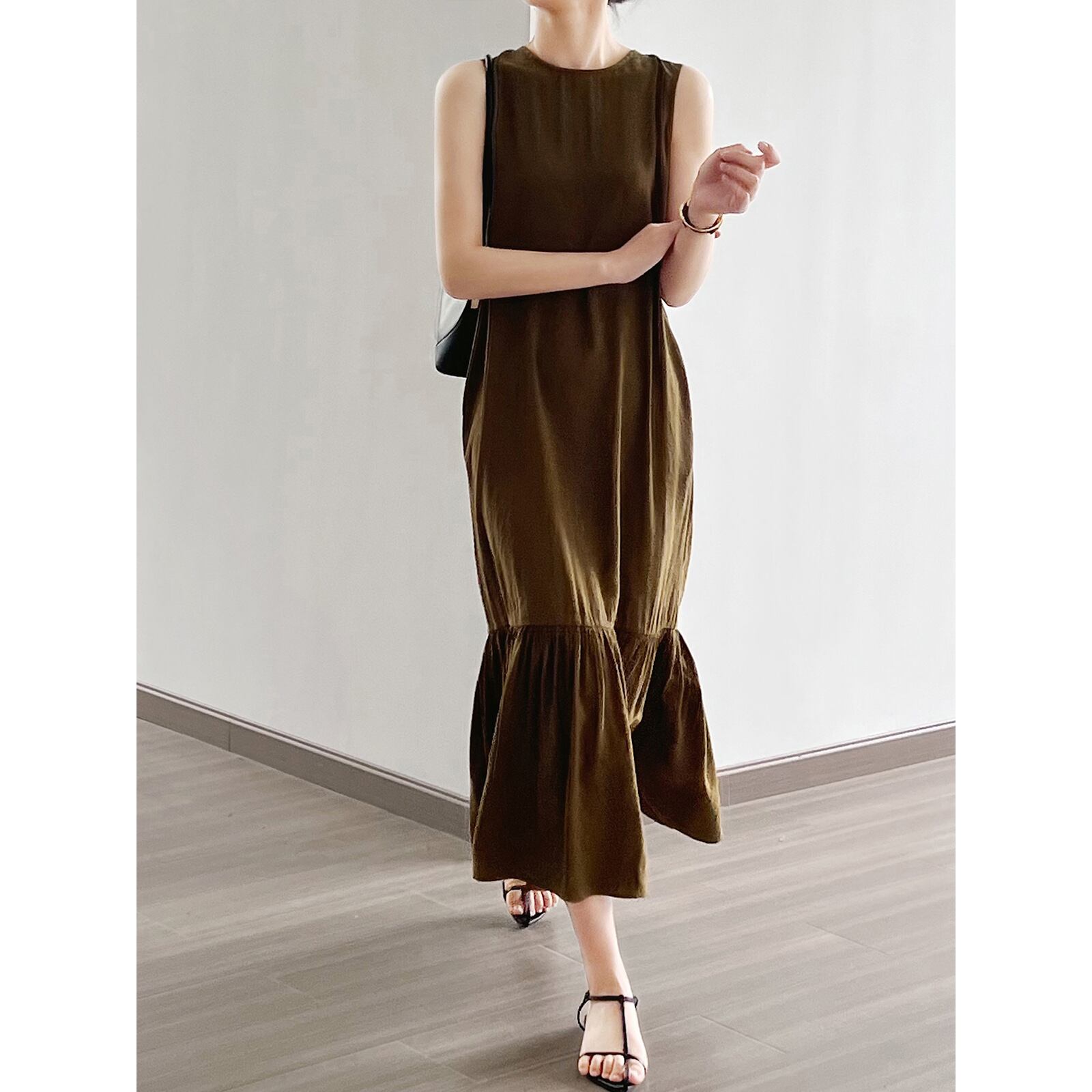【ワンピース】ワンピース 春 夏 秋 ワンピース 無地 レトロ ノースリーブ 20代 30代 40代 マタニティ ワンピース レディース ワンピース ロング丈 韓国 ワンピース 黒 オリーブ 春秋 ワンピース可愛い カジュアル M-L