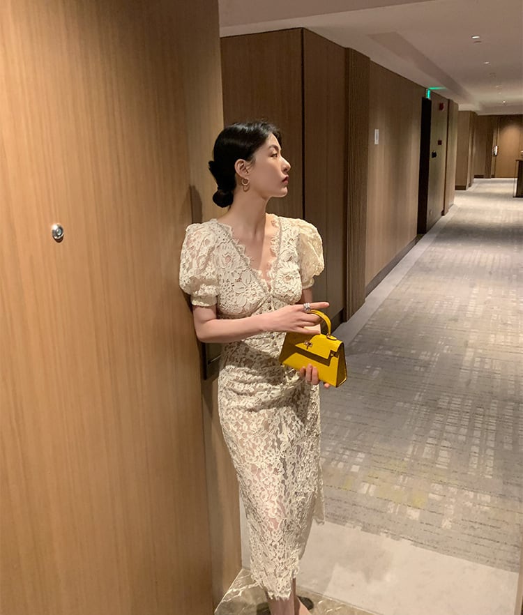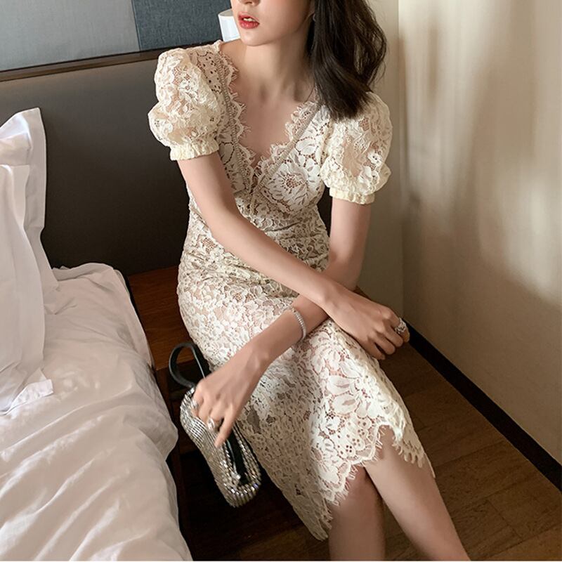 エレガントな総レースのワンピース。