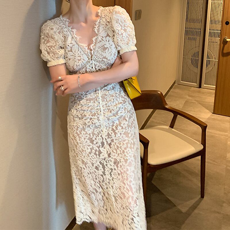 【ワンピース】ワンピース 春 夏 ワンピース 無地 ロングワンピース レトロ パフスリーブ 半袖 総レース 20代 30代 40代 マタニティ ワンピース レディース 韓国 ワンピース ドレス 白 春秋 ワンピース可愛い きれいめ フォーマル S-L