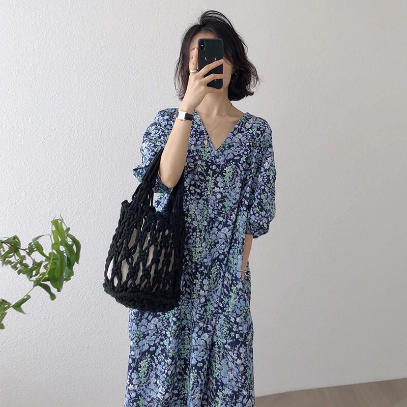 【ワンピース】ワンピース 春 夏 ワンピース 花柄 ロングワンピース レトロ パフスリーブ 半袖 七分袖 20代 30代 40代 マタニティ ワンピース レディース ロング ロング丈 韓国 ワンピース春秋 ワンピース可愛い S-XL