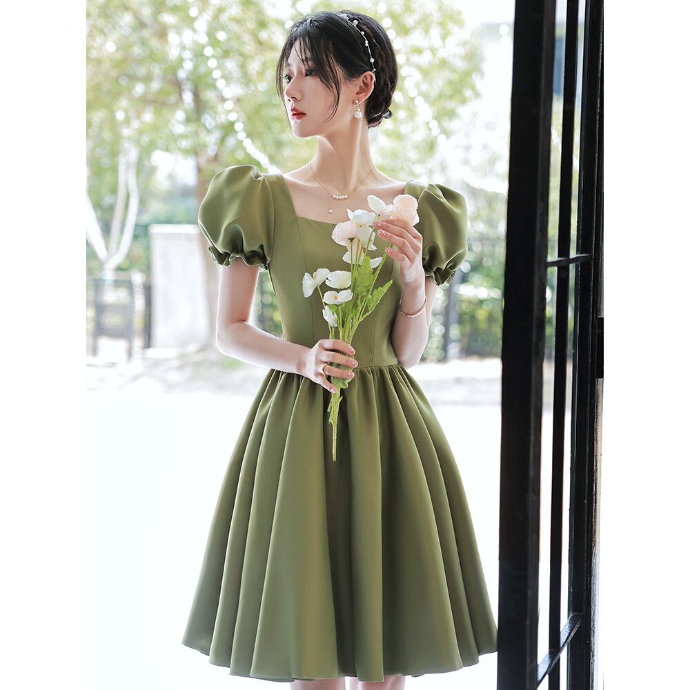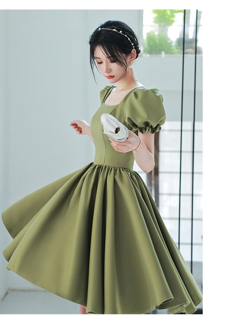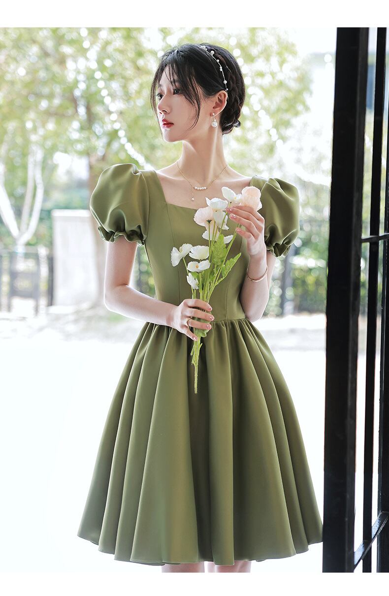 さわやかなグリーンカラーのパーティードレス。