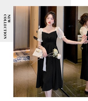 【ワンピース】大きいサイズ ワンピース 春 夏 ワンピース無地 膝下 ひざした ワンピース レトロ パフスリーブ 半袖 20代 30代 40代 マタニティ ワンピースロング丈 韓国 ワンピース ドレス 黒 春秋 ワンピース可愛い