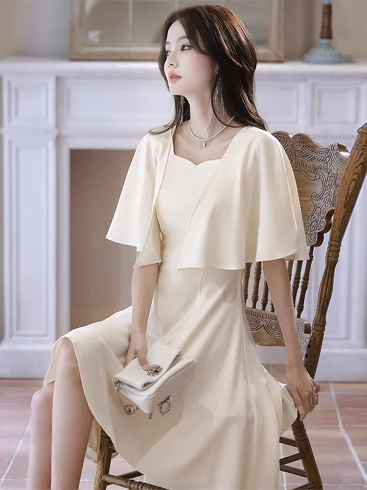 【パーティードレス】大きいサイズ パーティードレス 結婚式 結婚式のお呼ばれ 20代 30代 40代 ワンピース 膝丈 体型カバー シャンパン ホワイト 白 お呼ばれドレス フォーマルドレス 二次会 パーティー お呼ばれ 袖あり お呼ばれ フォーマル フォーマルワンピース おしゃれ